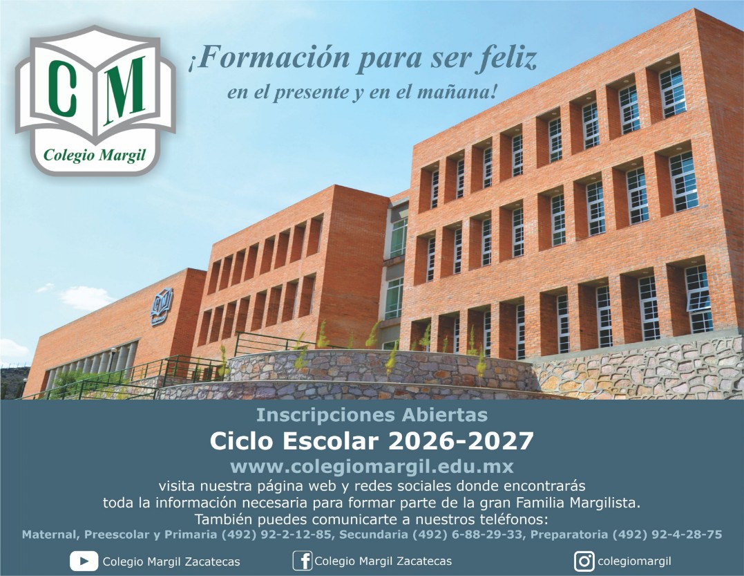 Colegio Margil, Avenida Solidaridad junto al polideportivo, Guadalupe, Zacatecas. C.P 98069 Tel: (492) 92-2-12-85